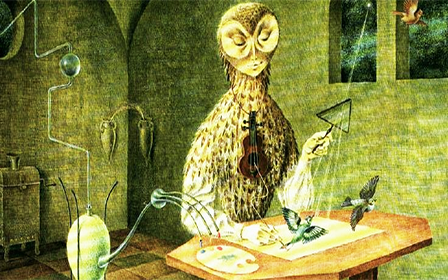 Su técnica se encarga de representar cada detalle de los elementos de su pintura, ejemplo de esto es la metáfora que se presenta en este lienzo, donde un ser extraño utiliza la ciencia, la magia y la naturaleza para ir creando distintas aves.