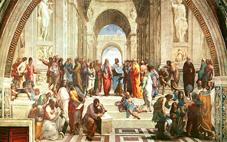 Rafael Sanzio: La escuela de Atenas (1511), El Parnaso (1511).